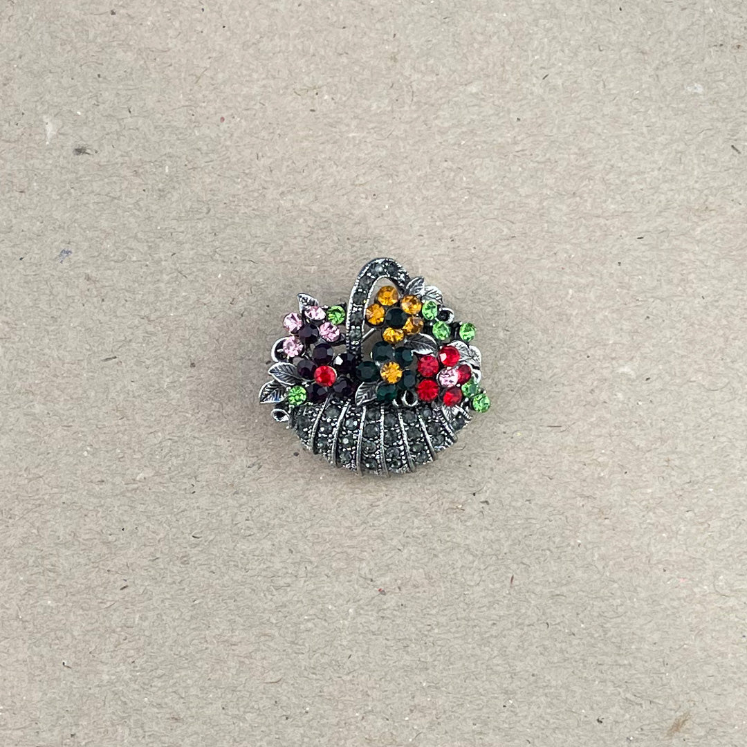 Flowers Fifi is a silver brooch that incorporates pops of yellow, red, green & pink crystals to make every day feel like springtime.