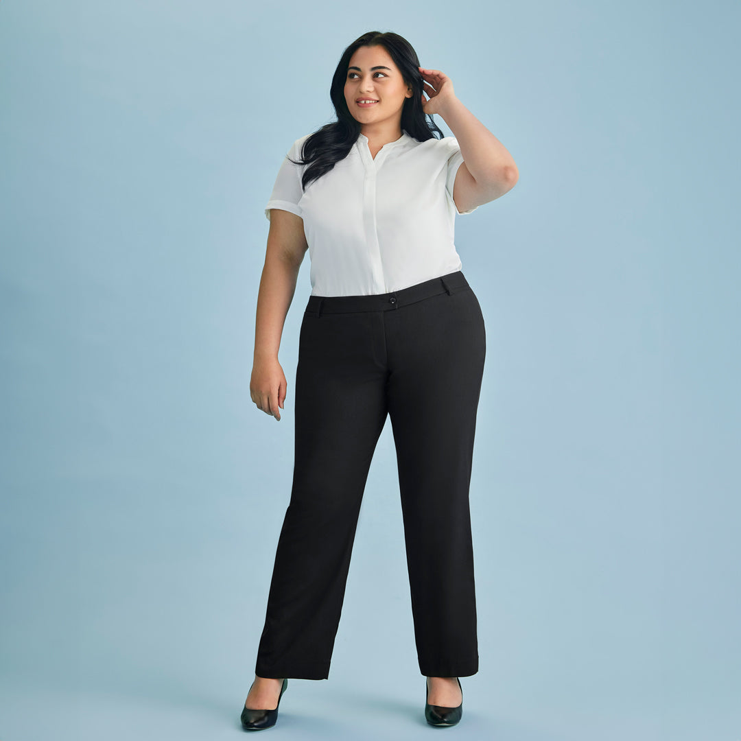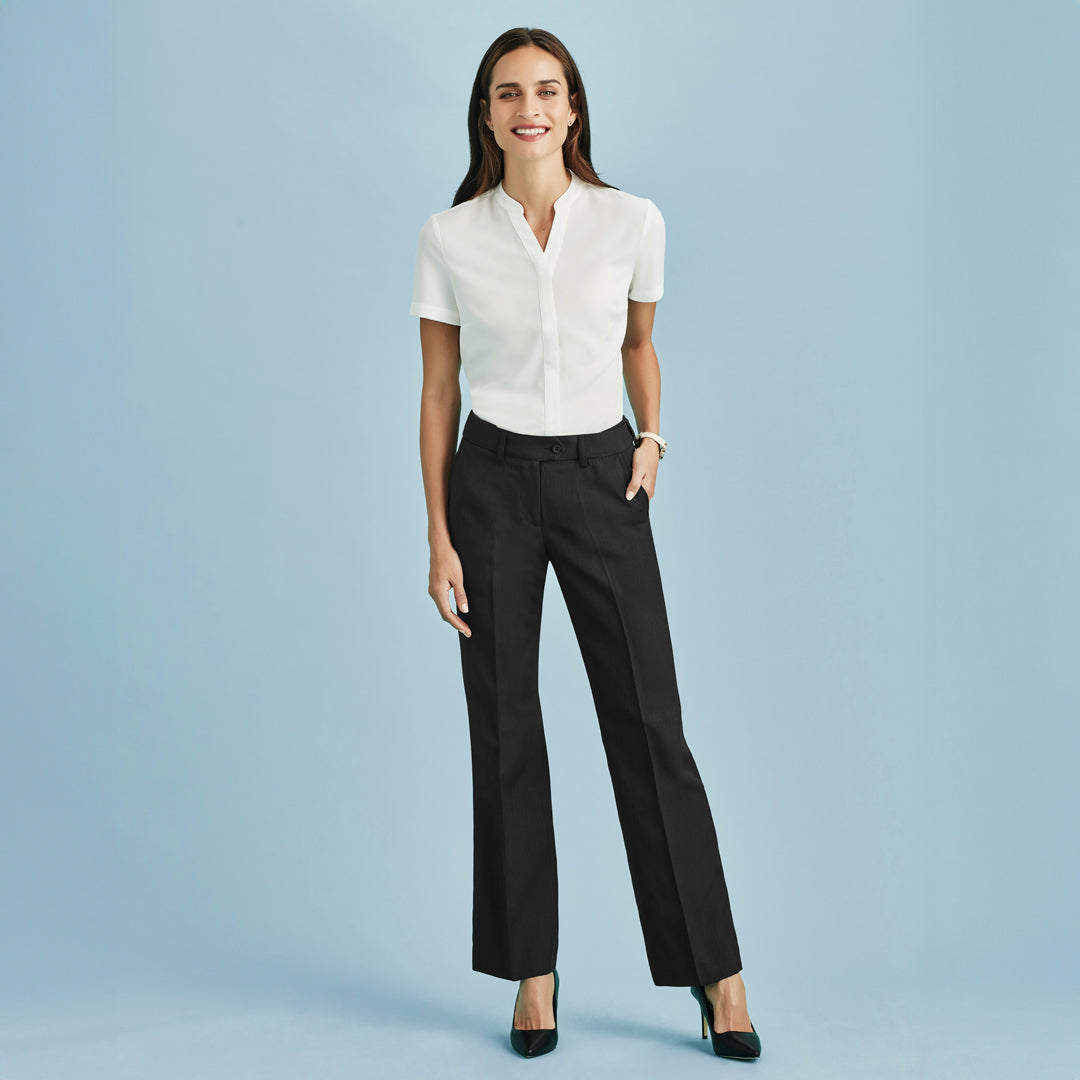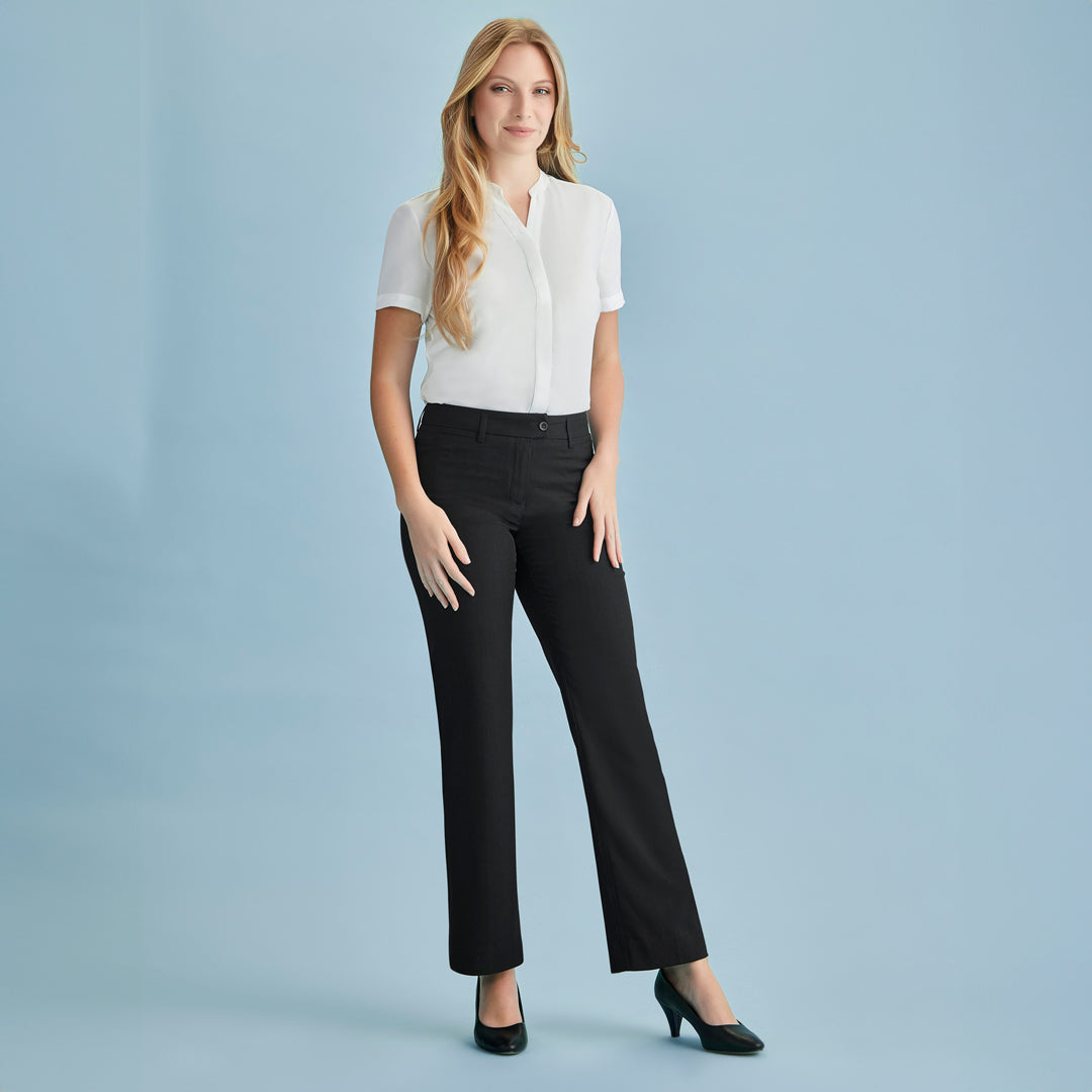 A comfortable, everyday work pant, The Cool Stretch Relaxed Pant for ladies features a straight leg & side pockets.