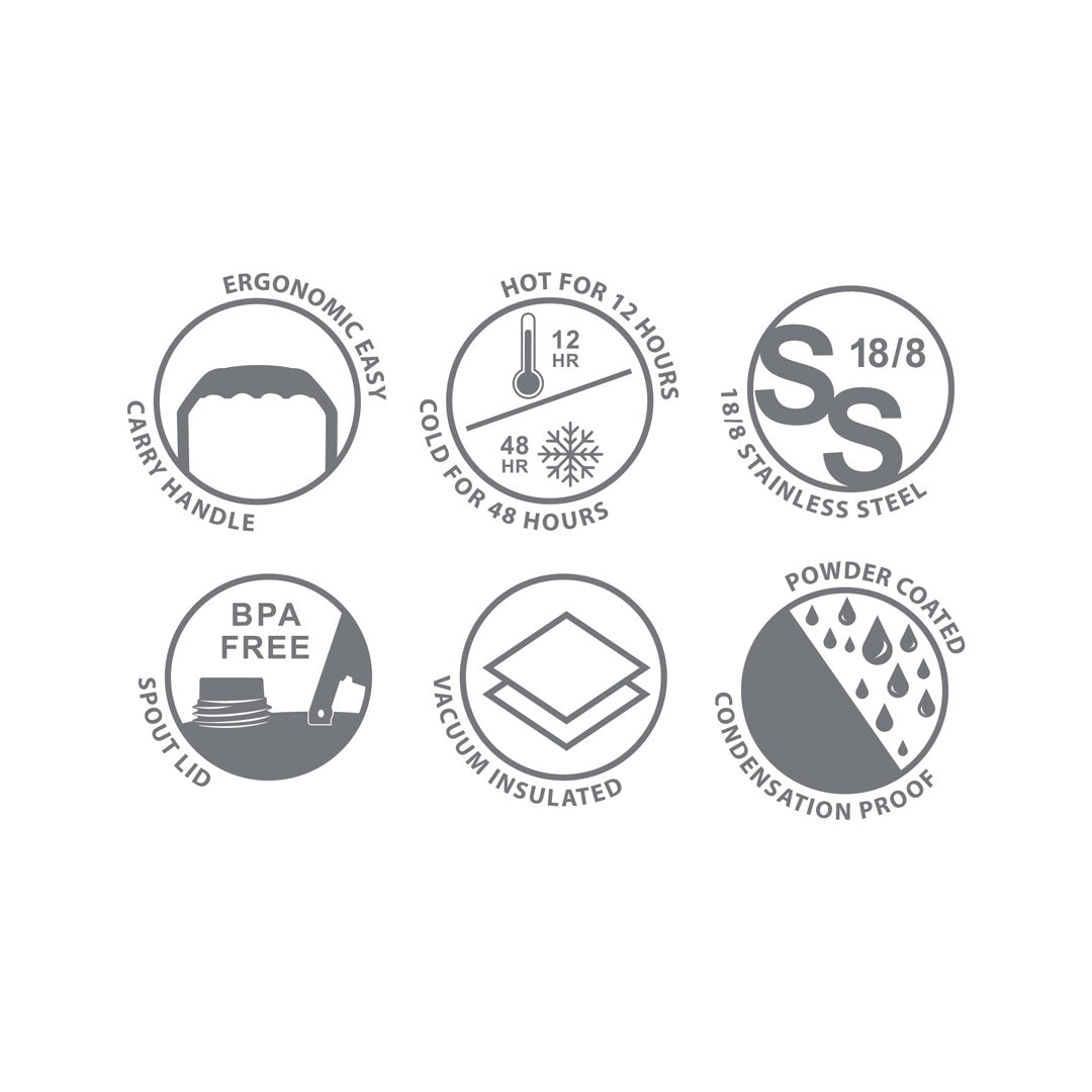 Stay hydrated with The Hydra Site Mega Bottle! With an extra large 1.9L capacity, double walled stainless steel construction and vacuum insulation, this bottle keeps your drinks cold or hot all day. The leak-proof, airtight lid has a convenient spout and flip up/twist on cap, while the wide mouth and ergonomic handle make filling and carrying a breeze.