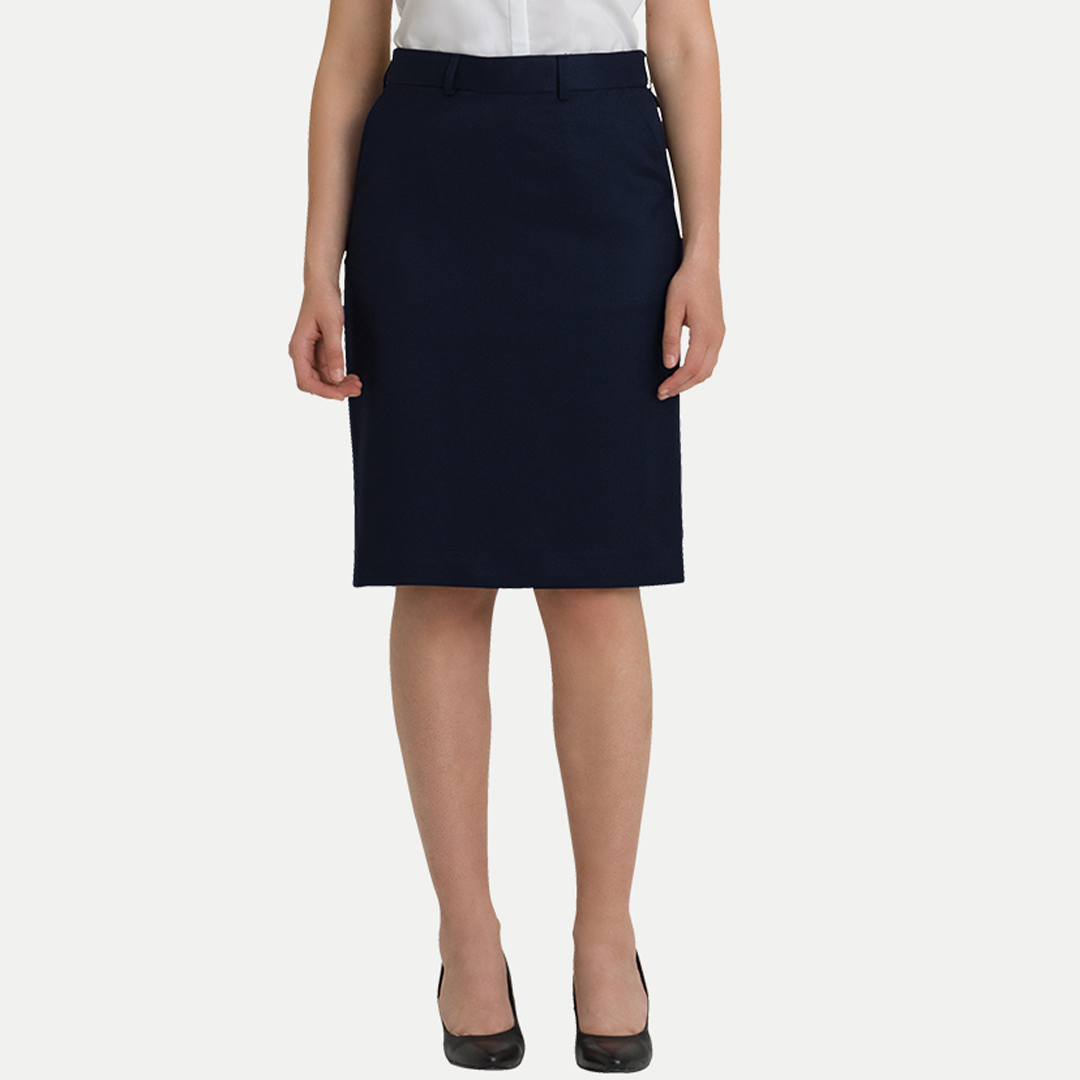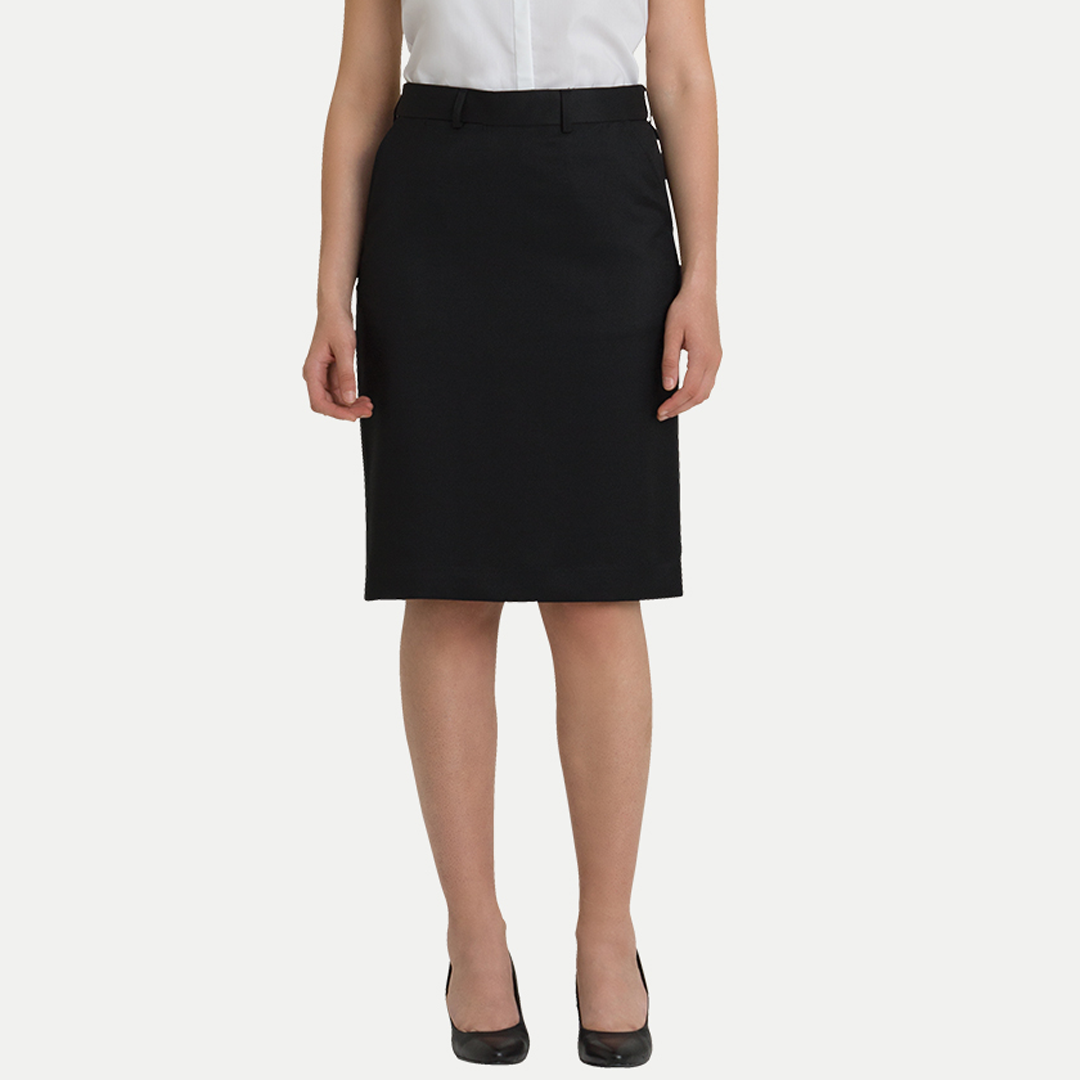 The Maddi front pocket sorbtek skirt is a versatile knee length pencil skirt featuring an easy fit, narrow waistband, functional front pockets & belt loops. A great option for every day wear.