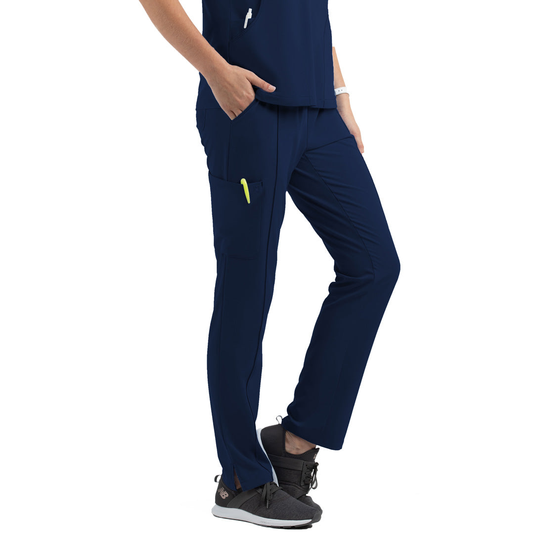 The Matrix impulse full elastic waist scrub pant for ladies features a full elastic waist with drawcord & side splits on the ankle. It's tapered leg makes it perfect for active medical professionals.