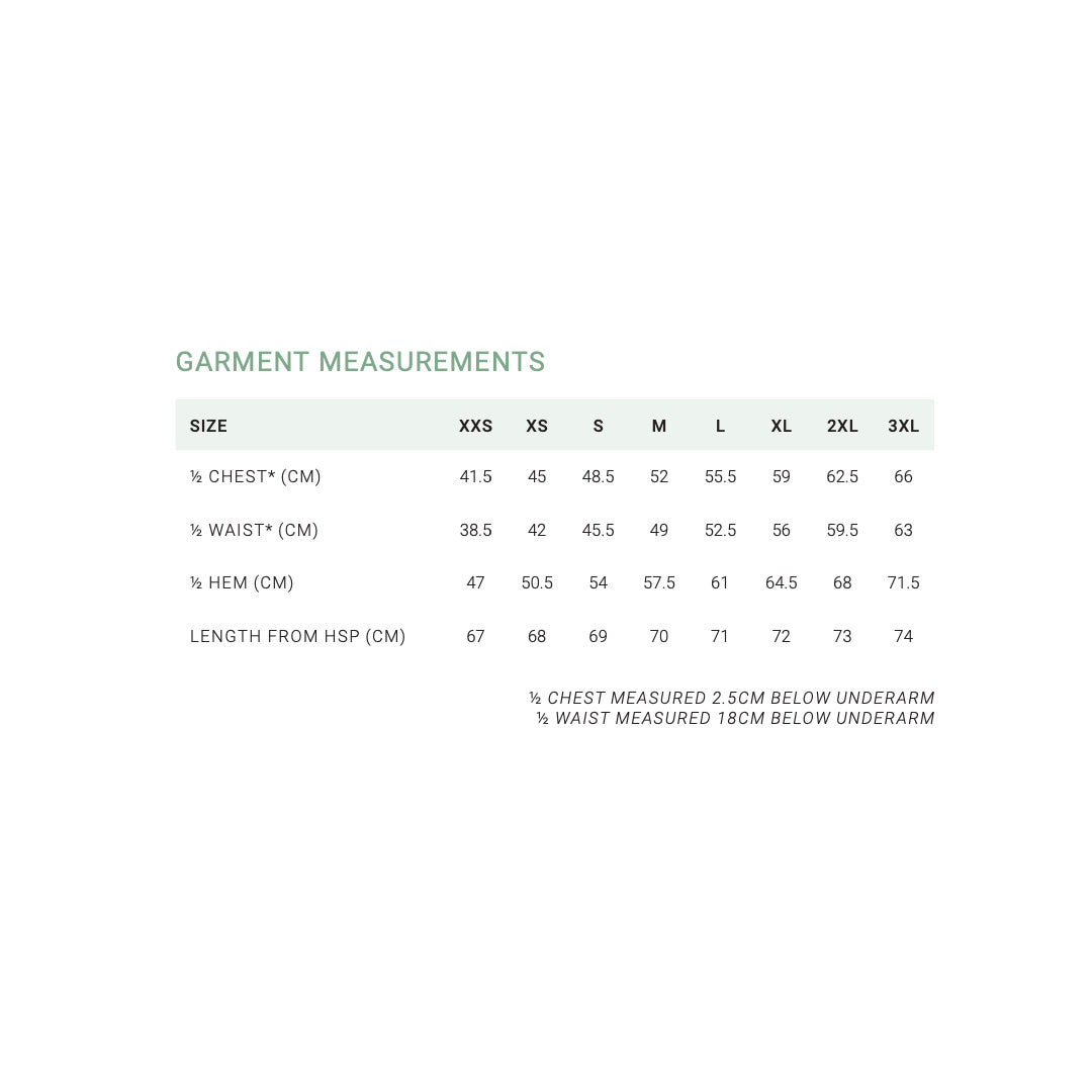 • the Garment Measuring Method &