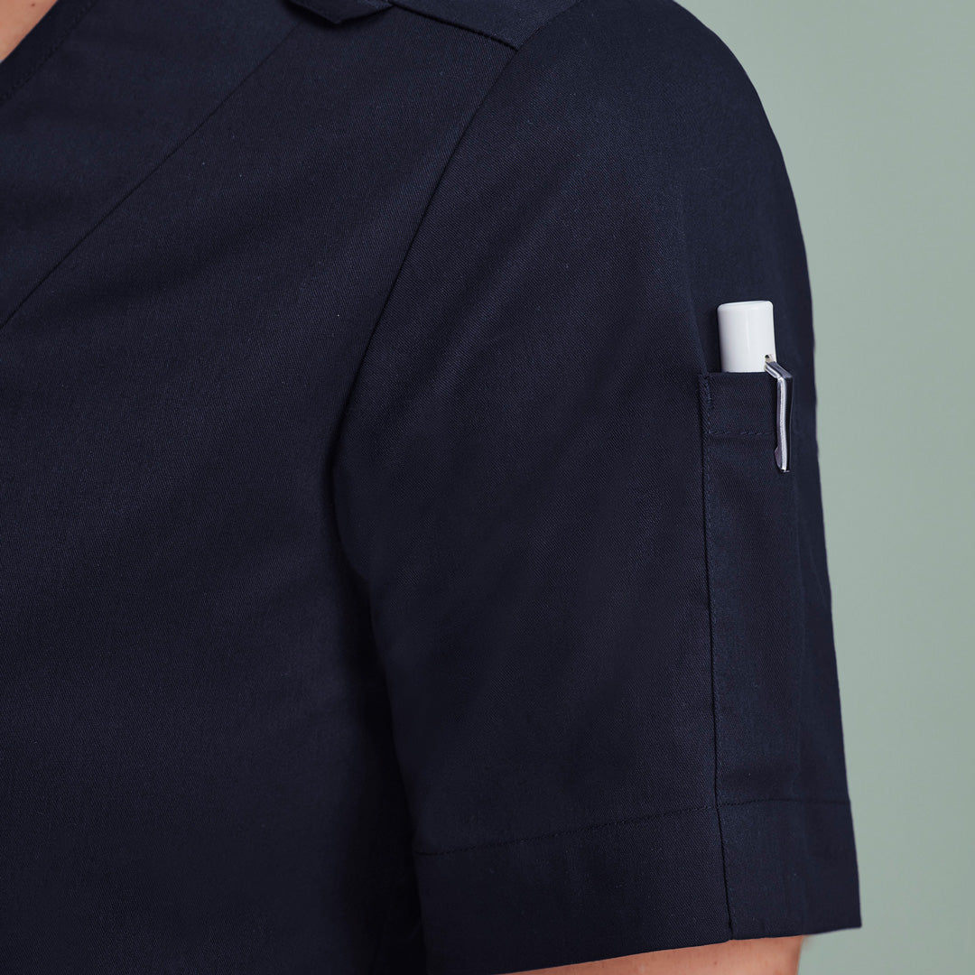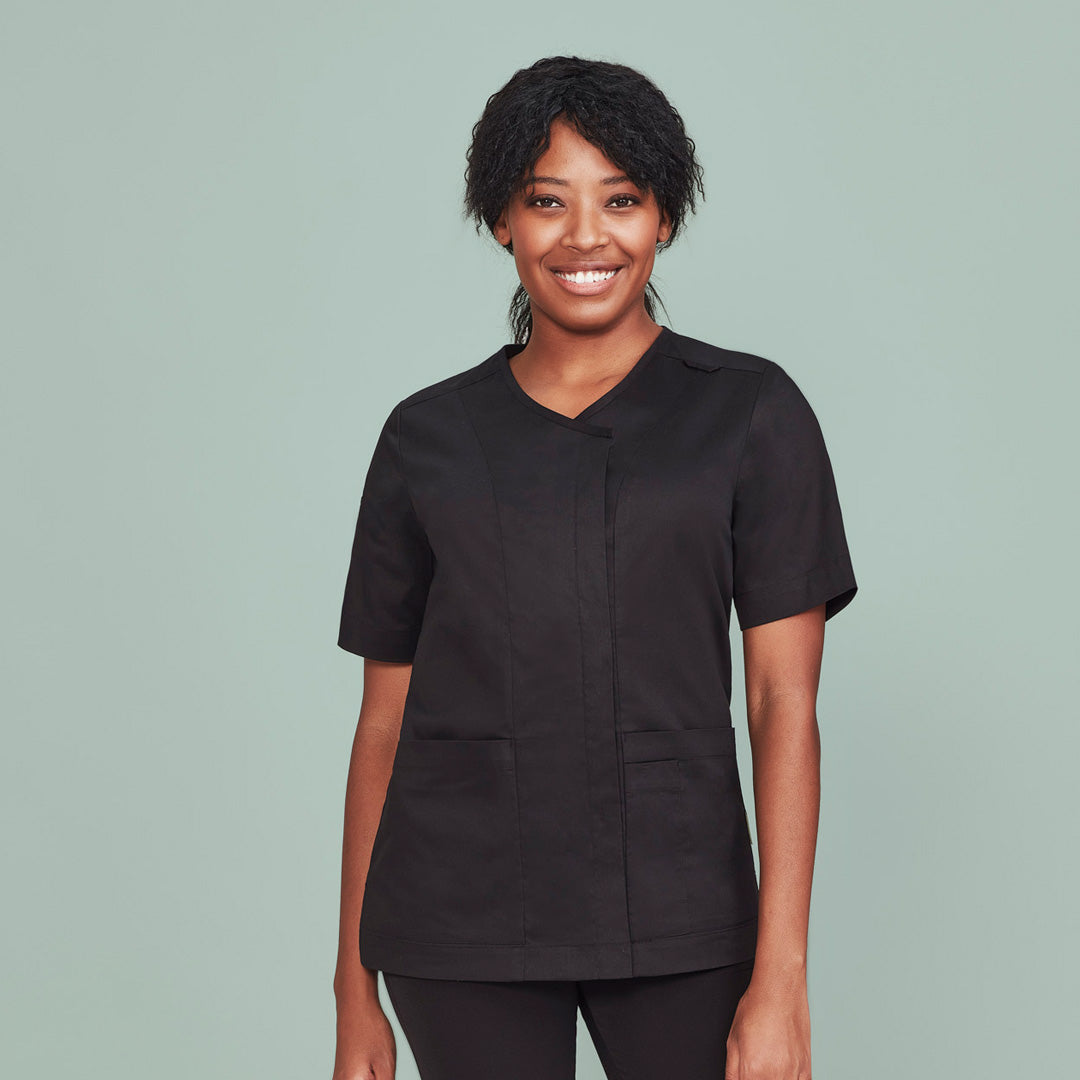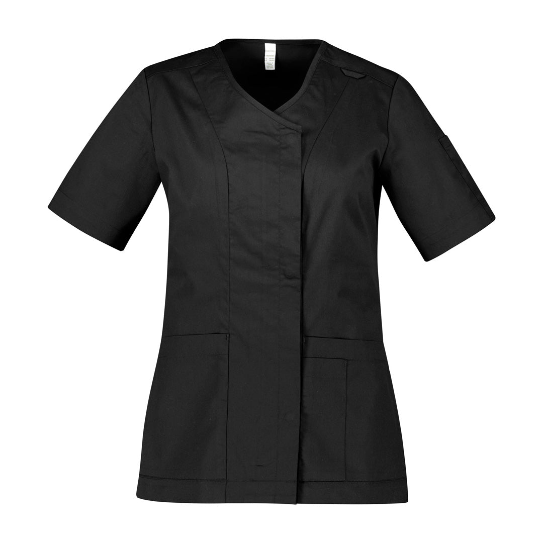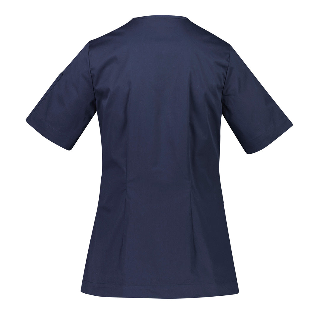 Featuring a stylish concealed zip front, the Parks scrub top for ladies is cotton rich offering comfort, style & durability.