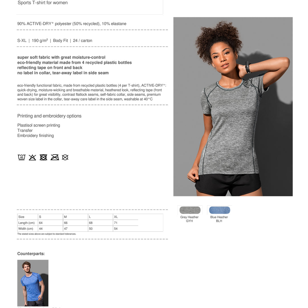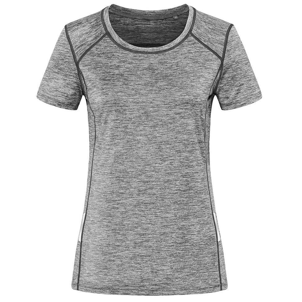 Eco-friendly crafted from recycled material the reflect recycled sports tee for ladies features reflective tape on the front & back for added visibility even in low light conditions.