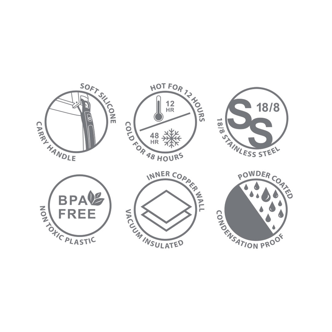Take on any adventure with The Tough Tank 2L Flask. This super sized insultated flask can hold up to 2 Litres of your favourite hot or cold drinks, keeping them at the perfect temperature for up to 12 hours for hot drinks and 48 hours for cold drinks. The large soft silicone carry handle and detachable/adjustable shoulder strap make it easy to carry, while the BPA-free food grade silicone seal ensures a completely sealed flask mouth. Stay hydrated in style!
